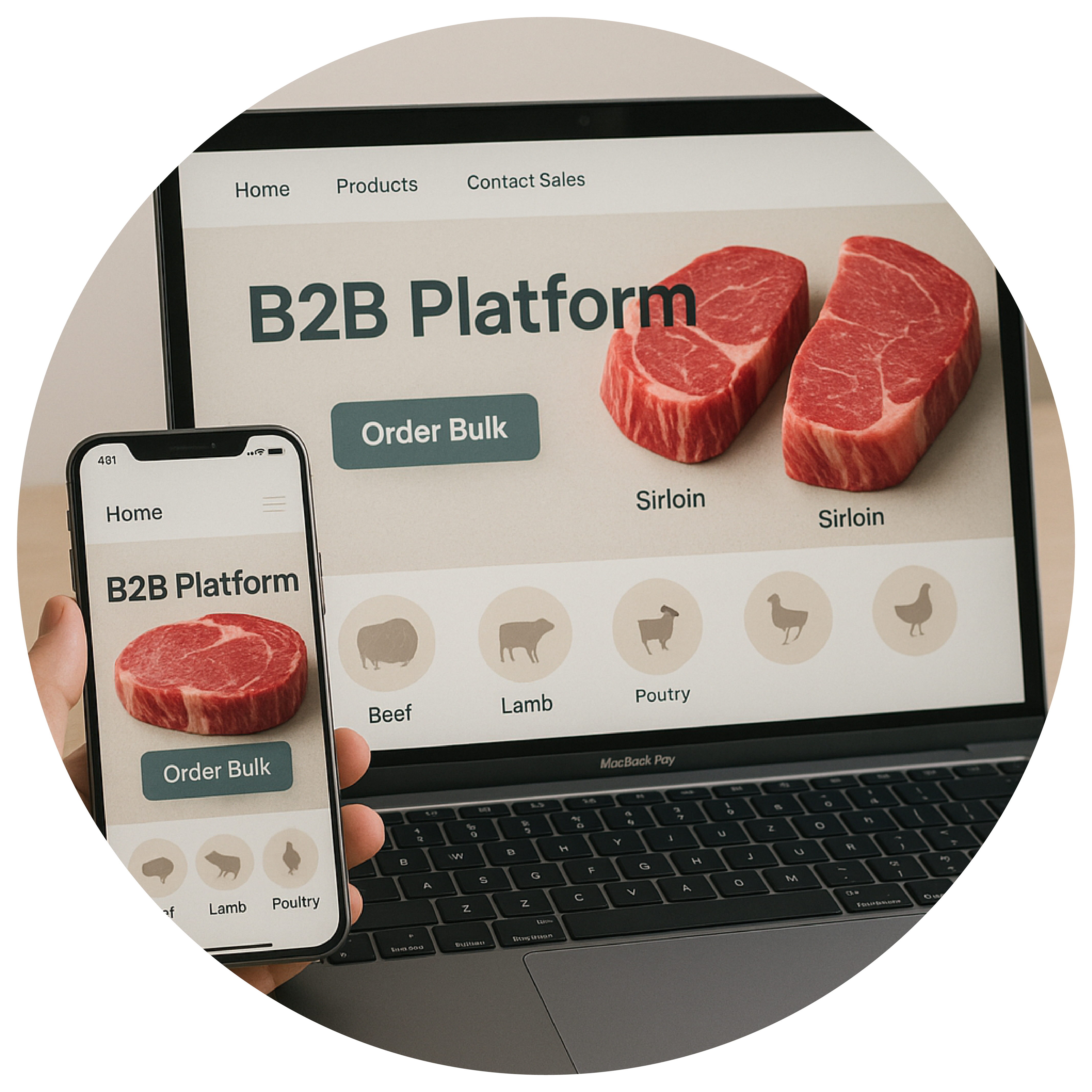 A user-friendly platform that allows businesses to easily browse and order frozen meat products with real-time access to pricing and inventory data.
